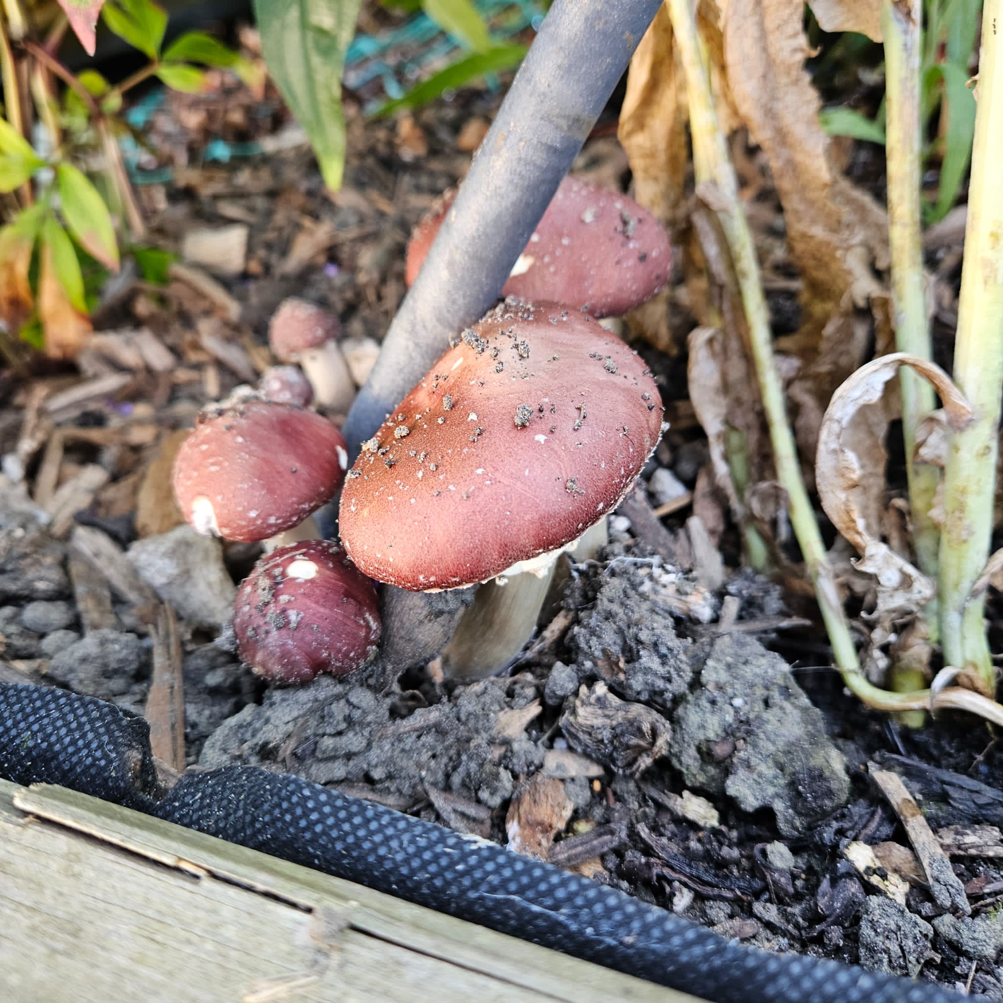 Finally, in late August, the first red caps started to push their way out of the dirt!