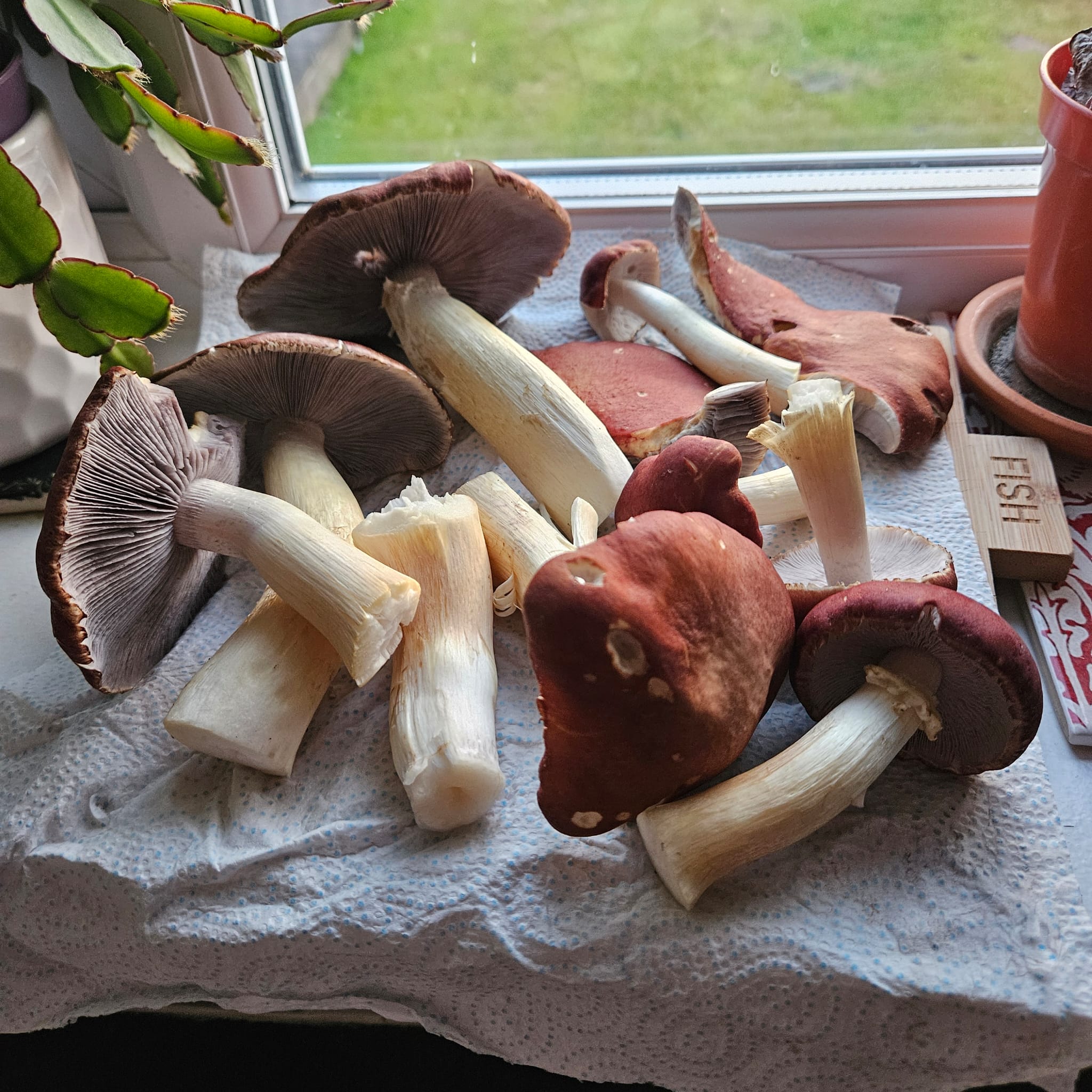 The first reward for careful maintenance over a period of 6 months. I harvested a large bag-full of the mushrooms, being careful to double check and identify what I had grown was definitely Wine Caps. Even if you buy spawn from a reputable company, it is very advisable to ID anything you grow, as there is no way of telling until the mushroom actually fruits.